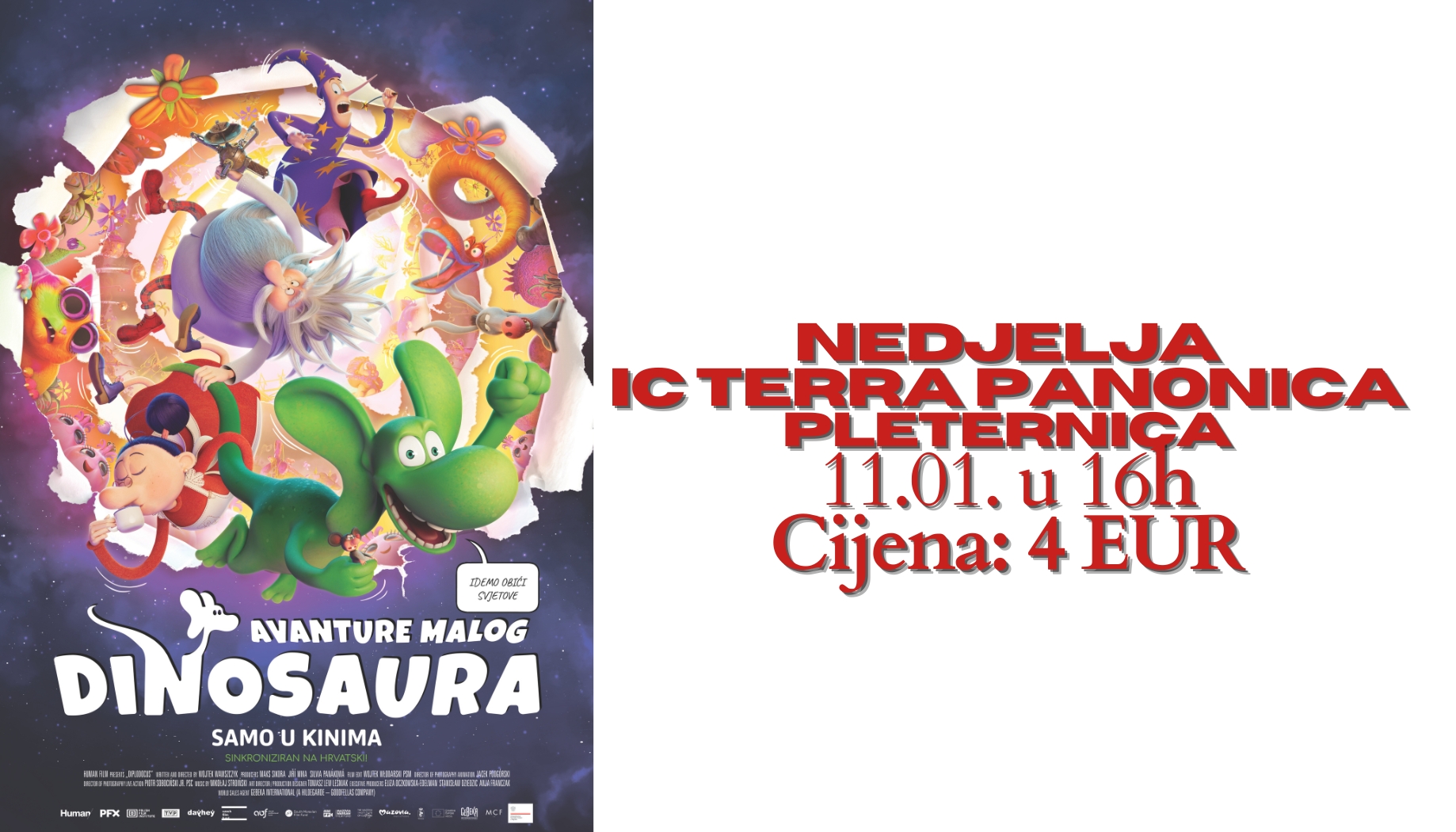 Kino u Pleternici u multimedijalnoj dvorani IC Terra Panonica. Ulaznice možete kupiti na blagajni dvorane ili u sustavu Eventima.